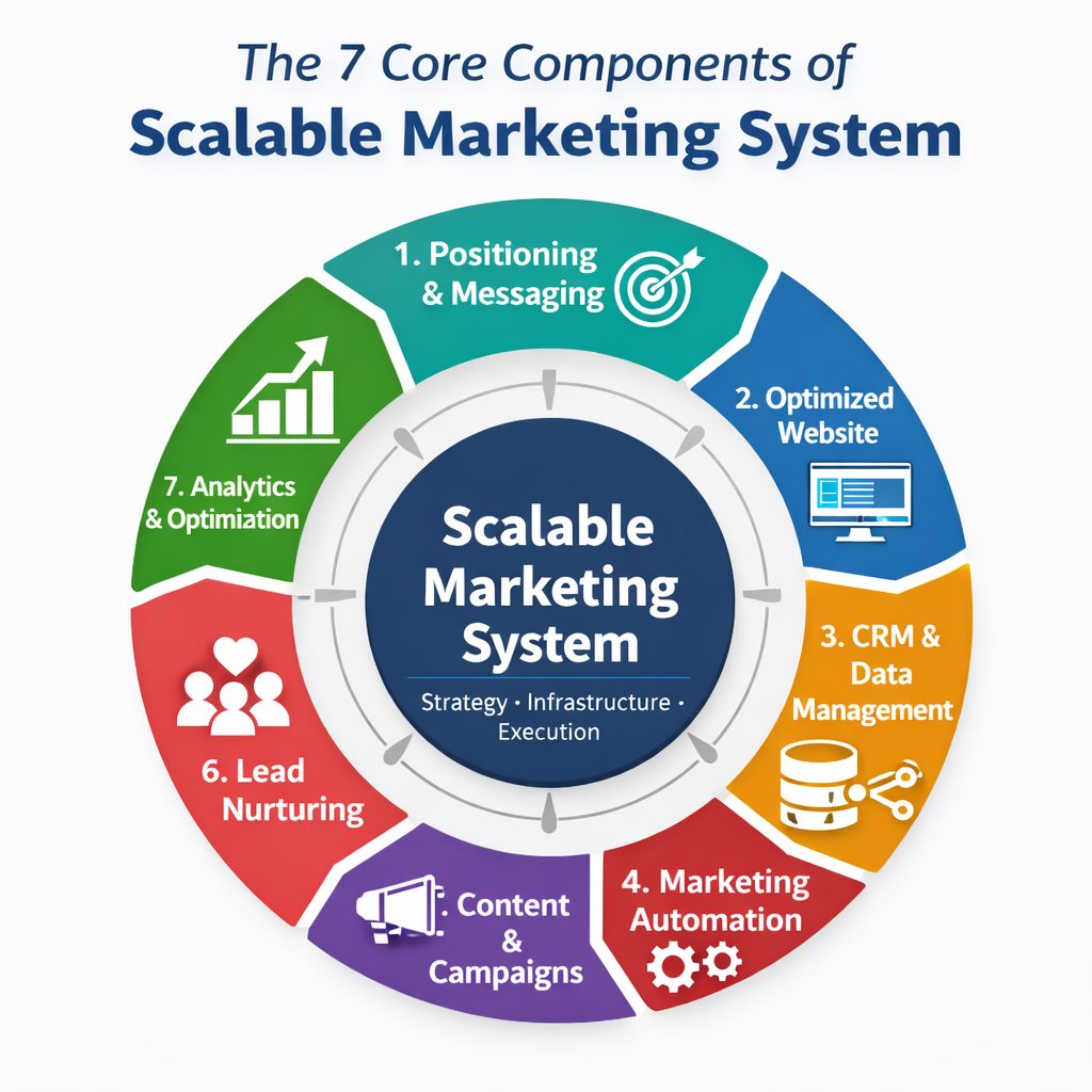 Building a marketing system doesn’t require a large team or complex infrastructure. It begins with aligning a few essential components so marketing efforts support a clear growth strategy.